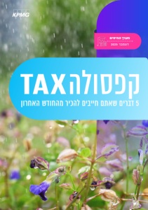המורכב מפירמות חברות עצמאיות המסונפות KPMG סומך חייקין, שותפות רשומה בישראל ופירמה חברה בארגון הגלובלי של KPMG 2025 © , חברה אנגלית פרטית מוגבלת באחריות. כל הזכויות שמורות. KPMG International Limited - ל המידע המוצג כאן הינו בעל אופי כללי ואינו מיועד לענות על הנסיבות הייחודיות של כל יחיד או ישות. אף על פי שאנו משתדלים לספק מידע מדויק וזמין, אין באפשרותנו להבטיח את דיוקו של המידע ביום בו הוא מתקבל וכן כי המידע ימשיך להיות מדויק גם בעתיד. אין לפעול לפי המידע המוצג ללא ייעוץ מקצועי מתאים לאחר בדיקה מקיפה ויסודית של המצב הספציפי. המורכב מפירמות חברות KPMG סומך חייקין, שותפות רשומה בישראל ופירמה חברה בארגון הגלובלי של KPMG 2025 © , חברה אנגלית פרטית מוגבלת באחריות. כל הזכויות שמורות. KPMG International Limited- עצמאיות המסונפות ל הינם סימנים מסחריים אשר השימוש בהם נעשה תחת רישיון של הפירמות החברות העצמאיות בארגון KPMG השם והלוגו של העולמי. KPMG