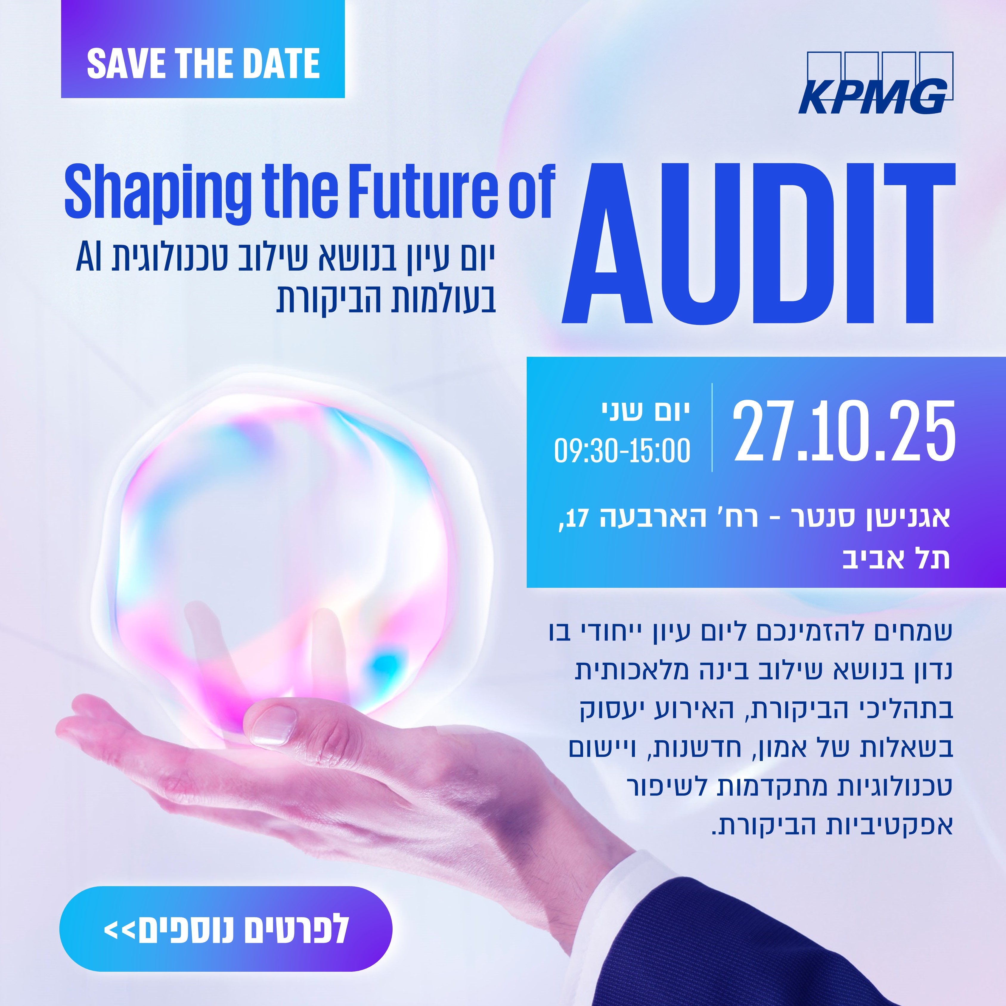 ©2025 כל הזכויות שמורות ל -KPMG סומך חייקין, שותפות רשומה בישראל ופירמה חברה בארגון הגלובלי של KPMG המורכב מפירמות עצמאיות המסונפות ל-KPMG International Limited, חברה אנגלית פרטית מוגבלת באחריותפיתוח אתר: TWB.co.il