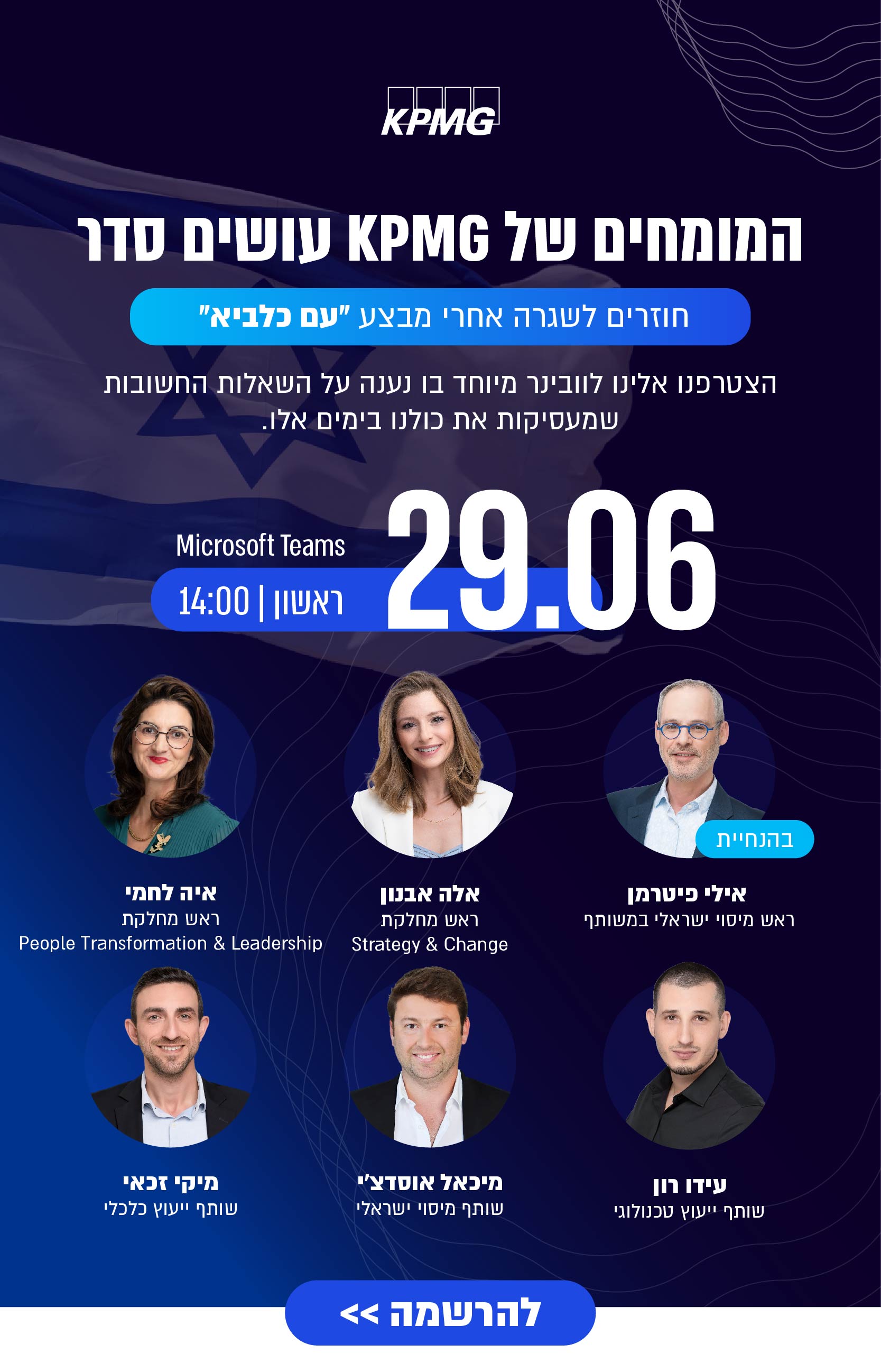 ©2026 כל הזכויות שמורות ל -KPMG סומך חייקין, שותפות רשומה בישראל ופירמה חברה בארגון הגלובלי של KPMG המורכב מפירמות עצמאיות המסונפות ל-KPMG International Limited, חברה אנגלית פרטית מוגבלת באחריות